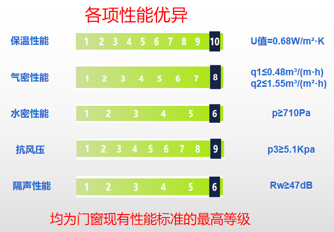 本系統(tǒng)密封性能好,推拉窗的氣密性可達(dá)8級(jí);抗風(fēng)壓性能可達(dá)9級(jí);超級(jí)隔音,特別適用于高架道路、飛行航道、鬧市馬路等高噪音地帶的住宅,隔聲性能≥47dB。