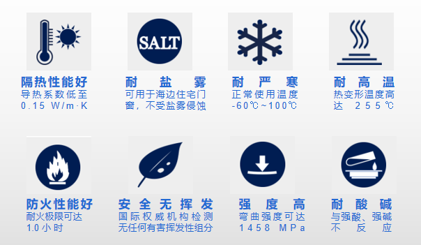 我司的高保溫節(jié)能門窗系統(tǒng)抗風(fēng)壓性能可達(dá)國(guó)家最高9級(jí)標(biāo)準(zhǔn)(5000Pa),無(wú)需增加型鋼整框加強(qiáng),由于該型材比鋁合金具有更大的強(qiáng)度性能,可制作尺寸大于一般斷橋鋁門窗的固定扇和開啟扇,可用于高層、高海拔建筑。玻纖增強(qiáng)聚氨酯拉擠、熱固型材與聚酰胺、聚氯乙烯等熱塑性材料相比,除承載優(yōu)勢(shì)外,還具有優(yōu)越的耐老化與耐腐蝕性能,因而擁有更長(zhǎng)的使用壽命(可達(dá)50年以上)。