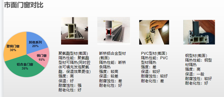 玻璃纖維增強(qiáng)聚氨酯。它以無(wú)紡玻璃纖維為增強(qiáng)材料,聚氨酯樹脂為基體材料,通過(guò)拉擠、熱固工藝成型的聚氨酯門窗型材。聚氨酯門窗型材通過(guò)表面處理后(覆膜、油漆)加工成的門窗為聚氨酯門窗,材內(nèi)填充不同發(fā)泡體可加工成聚氨酯防火門窗、聚氨酯耐火門窗、聚氨酯節(jié)能門窗、聚氨酯被動(dòng)門窗等不同產(chǎn)品。由于其纖維增強(qiáng),其抗壓、抗拉、抗折彎強(qiáng)度都很高,隨著國(guó)家對(duì)建筑節(jié)能的要求越來(lái)越高,該材料因具有獨(dú)特的隔音、保溫、耐火、抗老化、線膨脹系數(shù)低、節(jié)能環(huán)保等優(yōu)點(diǎn),目前已大面積用于節(jié)能門窗領(lǐng)域。