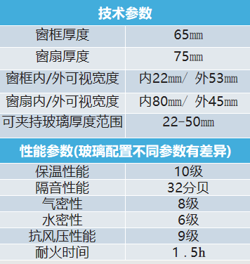 02 |型材傳熱系數(shù)為U=0.68W/ (㎡·K)·整窗可達(dá)1.1W/ (㎡·K), 同時(shí)它能夠輕松達(dá)到耐火完整性1小時(shí)。